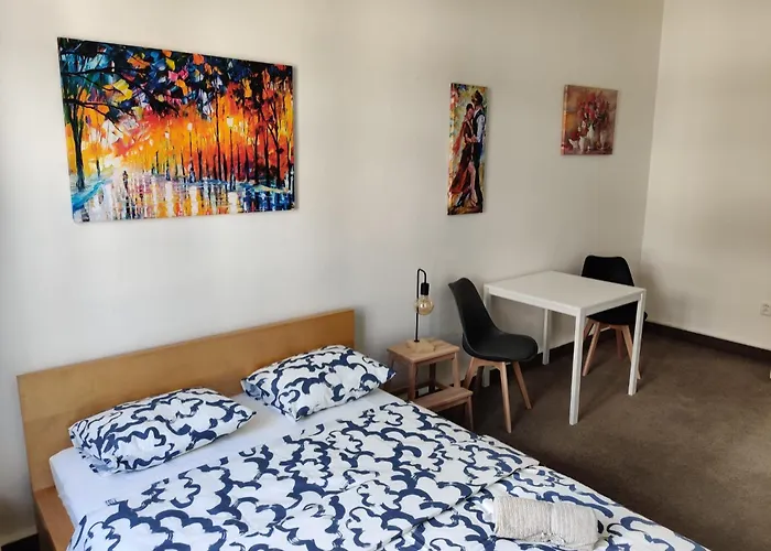 Los huéspedes del Comfortable 2 Bedroom Flat Free Parking Shared Kitchen pueden acceder a la estación de tren principal de de Praga, situada a 25 minutos a pie.